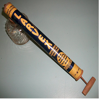 I have a c. 1945 Larvex Sprayer (see images) with text that reads "WAR EMERGENCY SPRAYER." I'm currently working on an exhibition on WWII and am wondering how this fits in. One theory we've come up with is that, after use as an insecticide, the public was encouraged to empty it, clean it, fill it with water and use it as a fire extinguisher should a fire "bomb" land in their home. But we can't find any documentation. Does anyone have some concrete knowledge of this object?