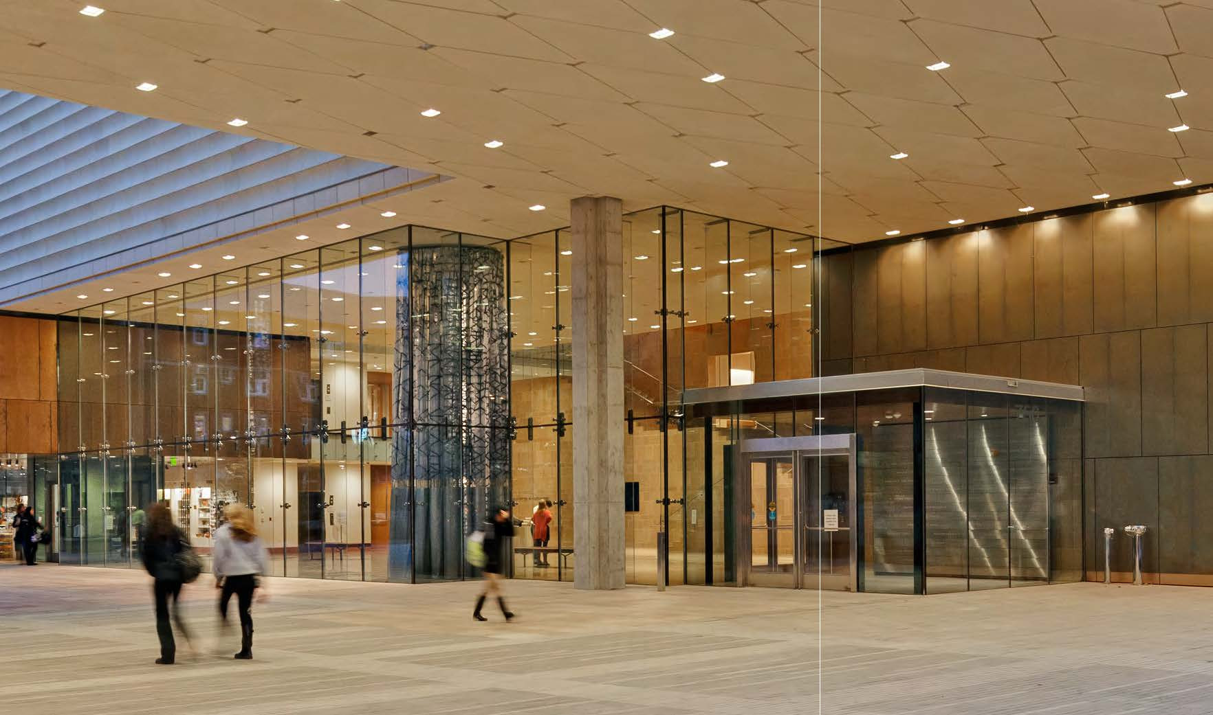 We have not done any donor recognition that used digital technology (mainly because we have been finding that institutions and or donors want to see their names in a more "permanent" way. Although that's not to say that there are not good examples of this out there. We did do a donor wall recently at the Chazen Museum of Art in the entrance vestibule which was made up of deeply engraved stainless steel plates that stand 1/2″ off the wall in a track system which allowed them to be slid out and or added to and changed if need be. There are a few images on the manufacturers web site that are not great. (not sure if the lighting was in place at the time) http://custommetals.com/home/signs/chazen-museum/. I have also attached a low res. image here but let me know if you would like me to share the detail with you or if you would like any design help from our firm.