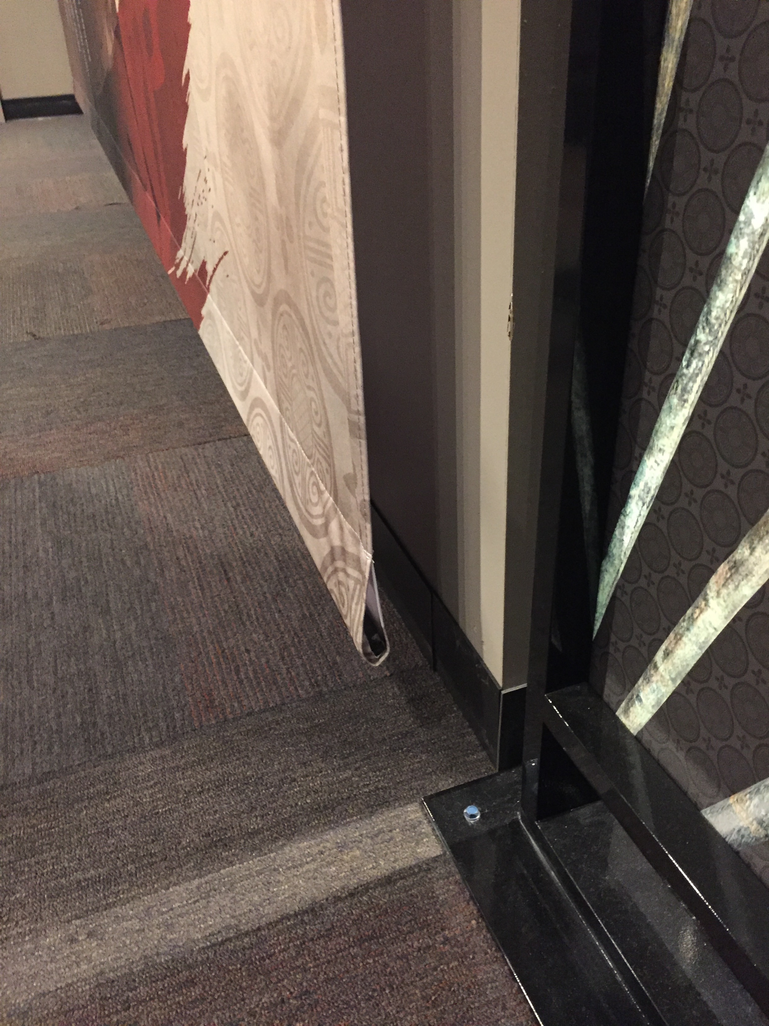 We are looking for the easiest way to mount a 30' long by 5' high vinyl photo enlargement in an exhibition. The wall is covered in coarse carpeting, kind of like <g class="gr_ gr_33 gr-alert gr_spell gr_inline_cards gr_run_anim ContextualSpelling ins-del multiReplace" id="33" data-gr-id="33">Atstro</g>-Turf, for lack of a better word. It needs to be pretty smooth and tight.