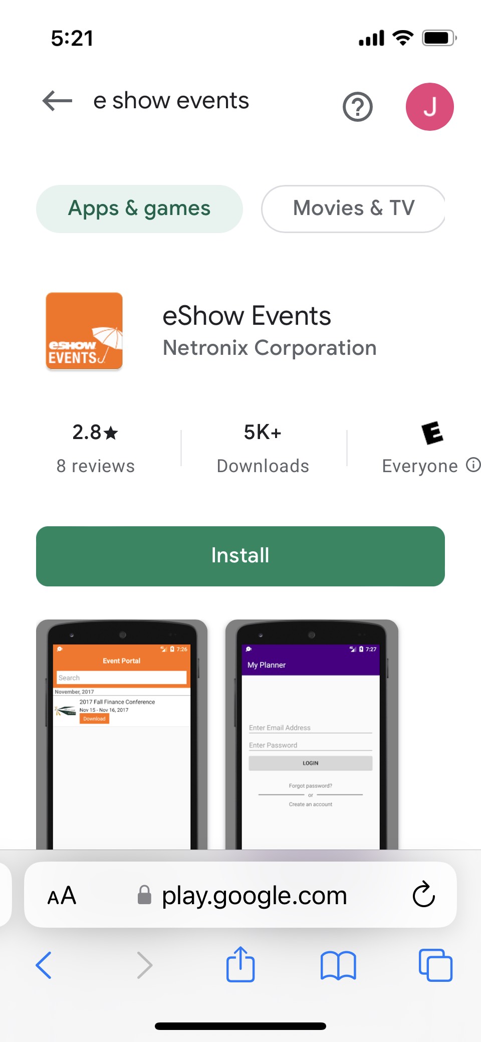 Here is the direct link to the eShow Events app for Android on the Google Play Store:https://play.google.com/store/apps/details?id=com.goeshow.container