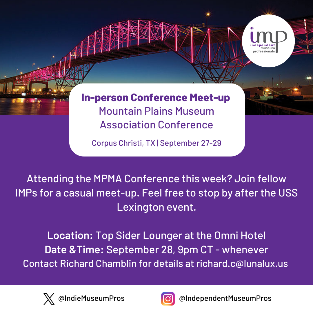 Headed to Corpus Christi for the Mountain Plains Museum Association conference? Come hang out with us on Sep. 28th for a casual meet-up!