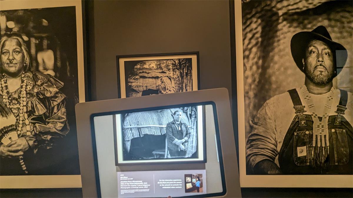 One would be to have the museum provide 3-4 tethered touchscreen devices like an iPad, loaded with the AR application, and possibly mounted on a gimbal, that visitors could use to observe the AR experience in each room. For visitor flow and other reasons this would be a better solution.