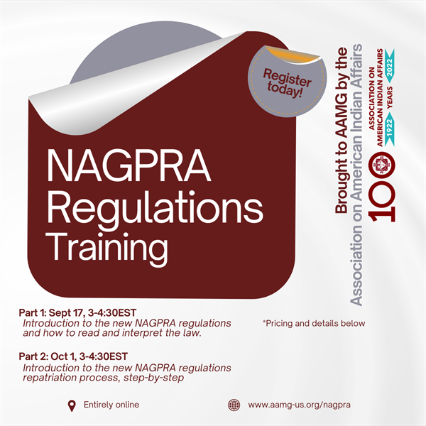 • 1.  NAGPRA Regulations Training, Sept 17 and Oct 1 - Last call for registration!